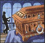 Inhalt (entnommen aus MC-Rückseite): Die drei Detektive sind dem Geheimnis eines verborgenen Tresors auf der Spur. Der neugierige Michael ist es, der ihnen den ersten Tip gibt; drei Totenköpfe auf einem Sarg scheinen Wegweiser zu sein. Doch schnell wird es gefährlich, denn in der Nähe des Sargs ist es nicht geheuer - schon gar nicht, wenn in der Nacht das Käuzchen ruft... |